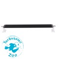 Lampę stawiamy na krawędziach akwarium. Nóżki umożliwiają zainstalowanie lampy na akwarium o szerokości 120cm. Uchwyty na szkło również są uniwersalne i pasują do grubości szkła od 4mm do 8mm.