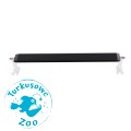 Lampę stawiamy na krawędziach akwarium. Nóżki umożliwiają zainstalowanie lampy na akwarium o szerokości 80cm. Uchwyty na szkło również są uniwersalne i pasują do grubości szkła od 4mm do 8mm.
